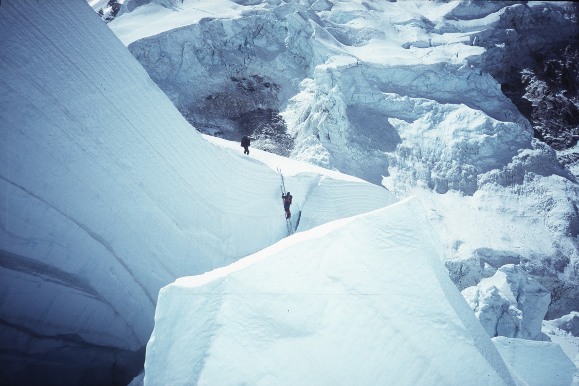 Οι πρώτες δυο ώρες ήταν δύσκολες. Έτσι συμβαίνει. Μετά μπαίνεις σε ρυθμό, τον προσαρμόζεις στην κατάσταση που βρίσκεσαι. Δεν μπορείς να υπερβάλλεις. Παπούτσια για τον πάγο, χοντρά γάντια, φόρμα, φακός, αξίνα, μπουκάλες οξυγόνου που ζυγίζουν επτά κιλά. Δεν θέλαμε να ρισκάρουμε χωρίς οξυγόνο. Σε αυτές τις συνθήκες, εκεί ψηλά, πρέπει να είσαι απόλυτα προσηλωμένος σε αυτό που κάνεις. Κάθε κίνηση μπορεί να σου κοστίσει.