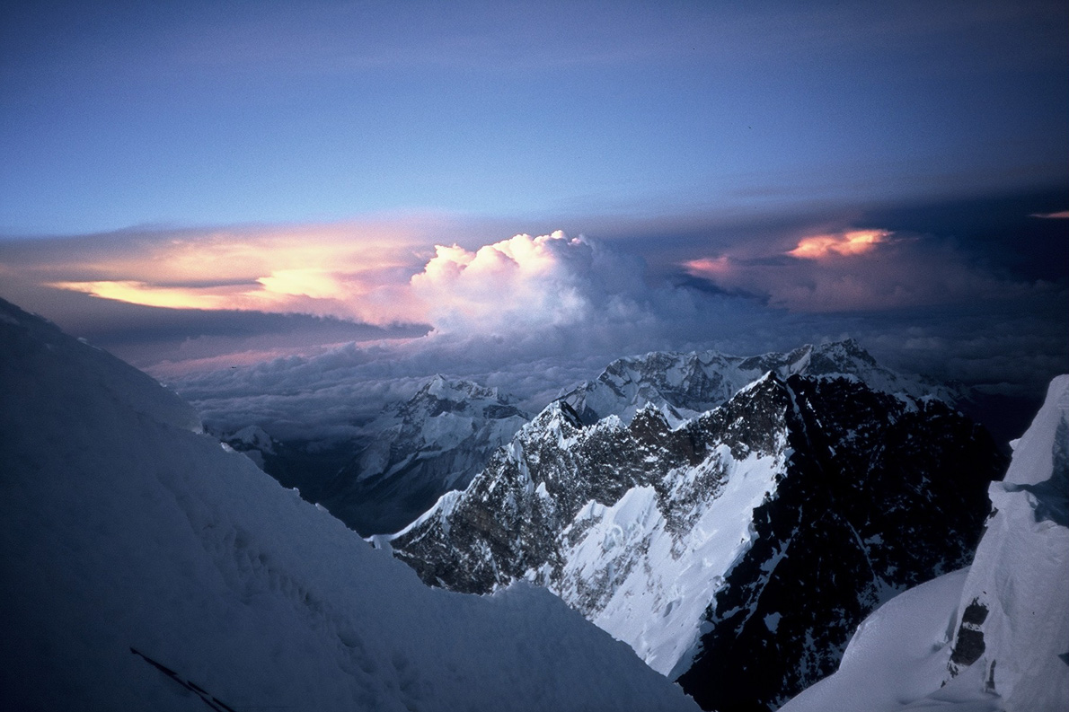 Ξεκινήσαμε για το τελευταίο κομμάτι της ανάβασης στις 21:00 της 15ης Μαΐου. Αυτά τα 800 περίπου μέτρα θα τα διένυα σε εννέα ολόκληρες ώρες. Χωρίς φεγγάρι, με ένα φακό να φωτίζει 30 μέτρα μπροστά. Ο σέρπα κι εγώ. Είχα καταφέρει να βγω μπροστά. Οι υπόλοιποι Έλληνες αναρριχητές ακολουθούσαν πίσω. Κοιτάζοντας προς τον Ινδικό Ωκεανό, έβλεπα αστραπές να φωτίζουν, σαν ψευδαίσθηση, τον ουρανό. Οι μουσώνες είχαν ήδη ξεκινήσει. Χιλιάδες χιλιόμετρα μακριά.