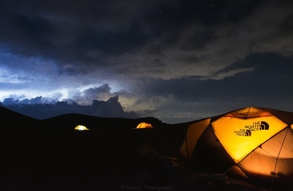 Με το νυχτερινό πέπλο να απλώνεται στο Οροπέδιο των Μουσών, μία ακόμα απογευματινή μπόρα μαίνεται στα βόρεια του Ολύμπου, πάνω από τα Πιέρια Όρη και το Βέρμιο. (Photo © Fotis Christopoulos)